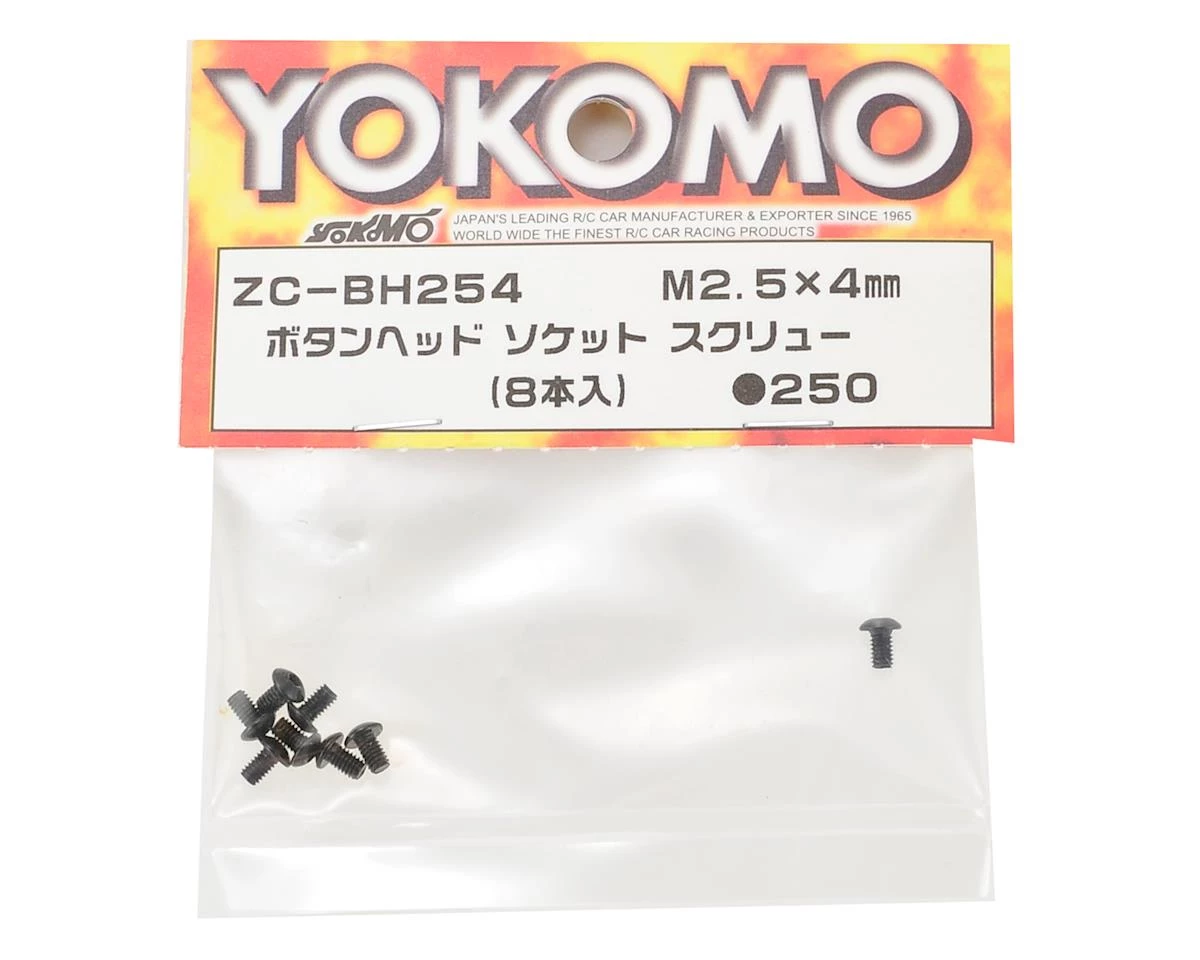 This is a pack of eight Yokomo 2.5x4mm Button Head Hex Screws.Â