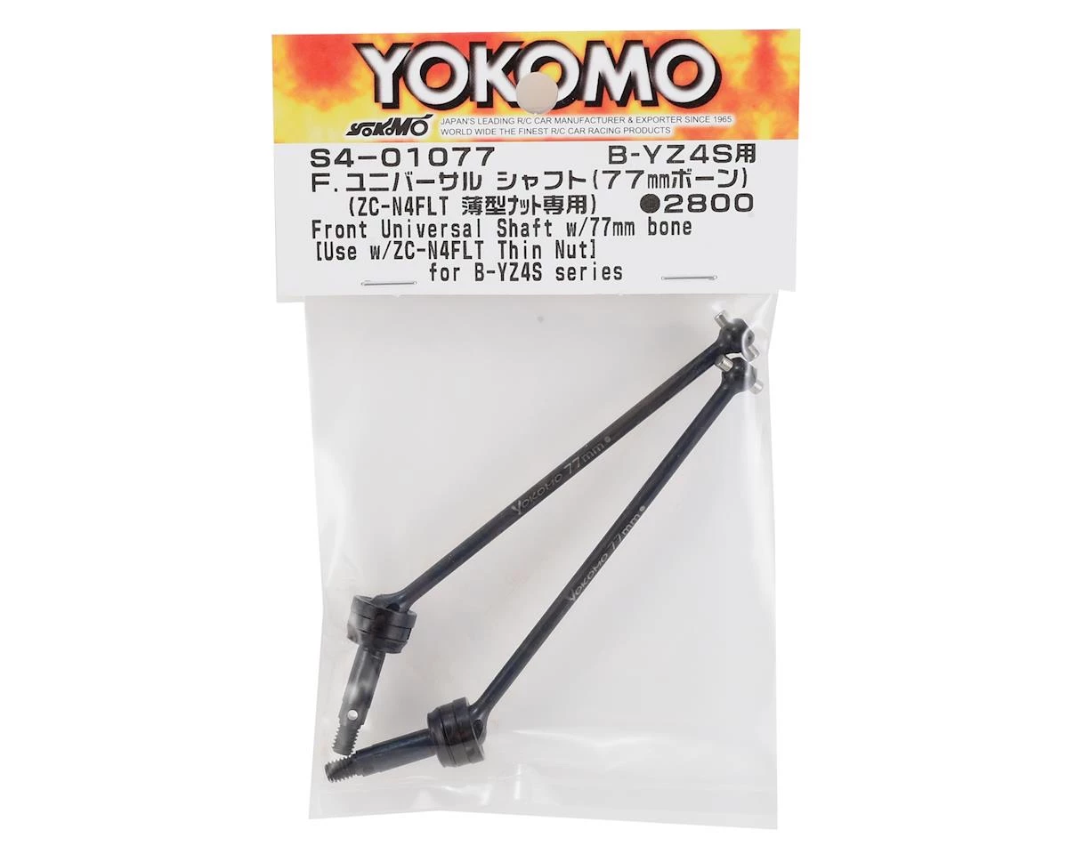 This is a pack of two replacement Yokomo 77mm Front Universal Shafts. These driveshafts need to be used with the YOKZC-N4FLT low profile nuts.