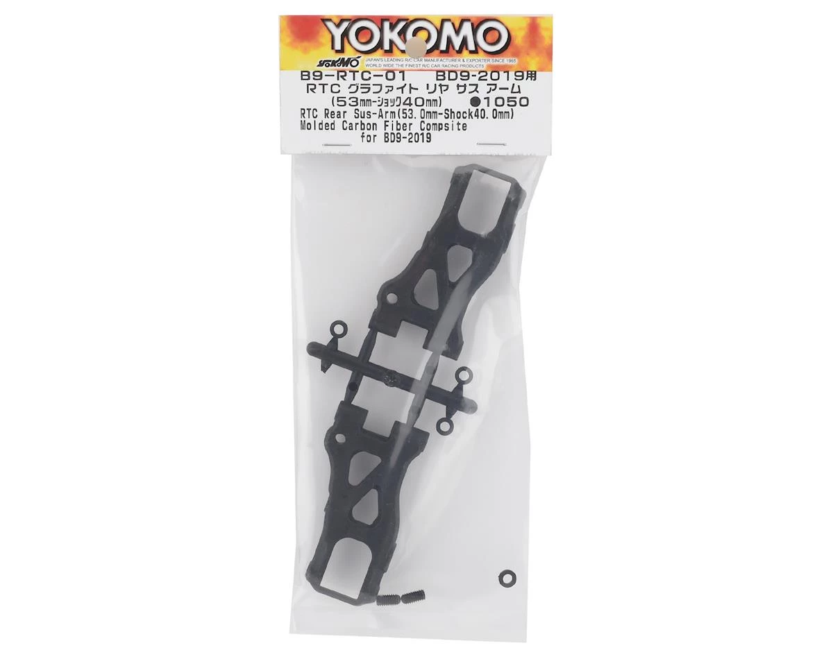 Yokomo BD9 RTC Graphite Rear Suspension Arm. This is a replacement for BD9 models equipped with the Yokomo RTC Rear Toe Control System (YOKB9-RTC). Package includes two rear suspension arms.