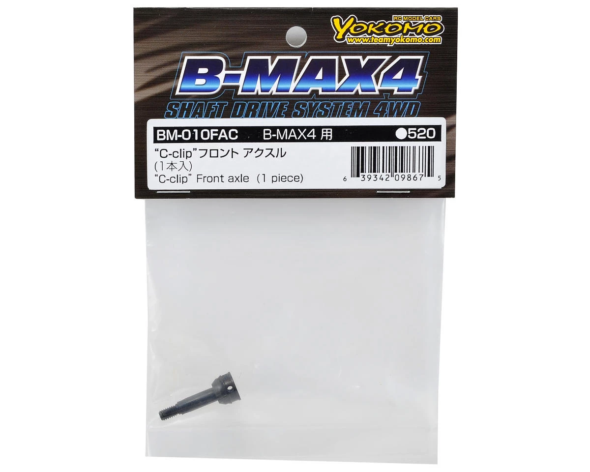This is a replacement Yokomo C-Clip Front Axle, and is intended for use with the Yokomo B-MAX4 II 1/10 4wd buggy.
