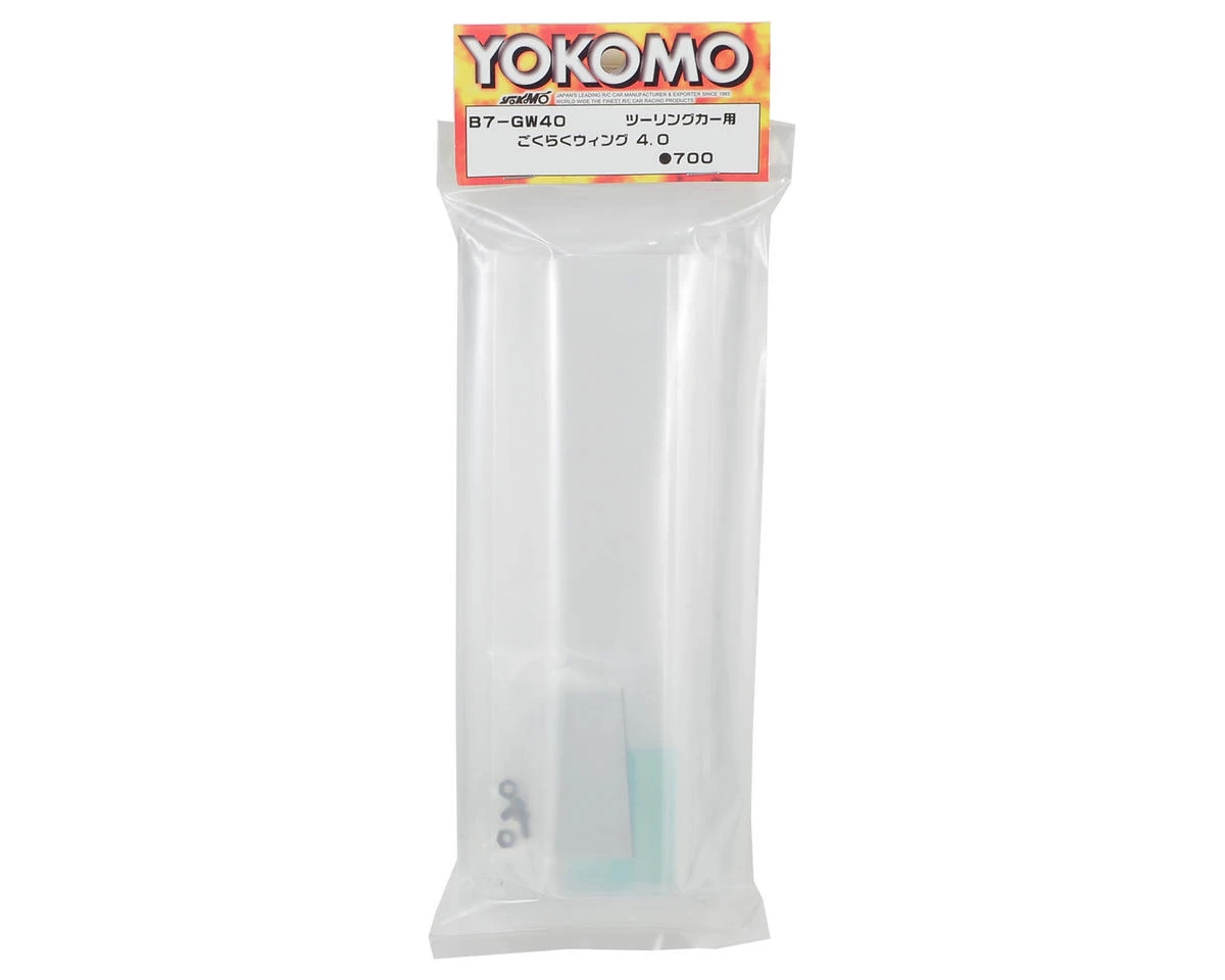 This is an optional Yokomo Gokuraku Wing 4.0. Designed by Yukijiro Umino, the Gokuraku 4.0 wing features fine tuned contours to provide increased downforce compared to the standard wing.