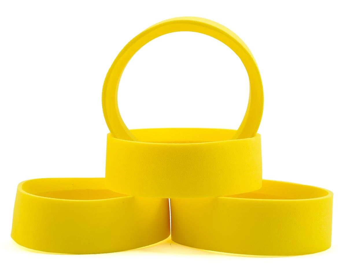 This is a pack of four Yokomo Molded Touring Car Inner Foam Inserts in Soft compound, designated by Yellow color. These inserts are for use with 1/10 Touring Car tires and wheels.