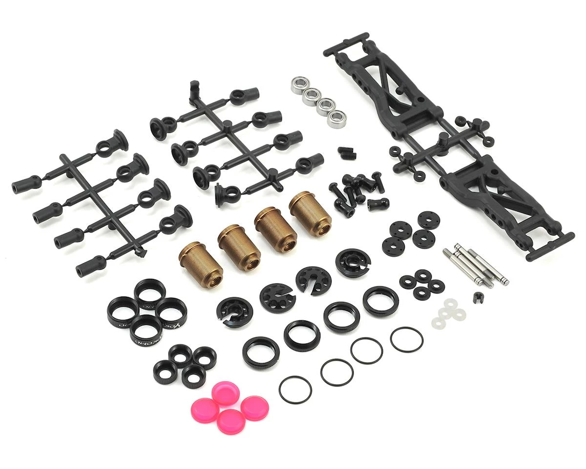 This is an optional Yokomo YD-2 Grade Up Conversion 1. This conversion includes a set of super low friction aluminum shocks which becomes the basis of machine specifications, long stroke rear suspension arm which is effective for improving rear traction, and low friction bearing which prevents spin by lowering the front rolling resistance.