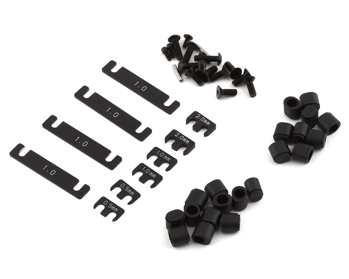Yokomo YD-2S Aluminum Adjustable Rear Suspension Arm Set. This is an optional accessory intended for the YD-2S drift car. Made from CNC aluminum this arm set offers high precision, consistency and style to your YD-2S. These arms feature adjustable length giving the user the ability to customize the track width to tune the handling of the vehicle or fine tune the body fitment. With superb quality, precision adjustments and the looks to match this aluminum adjustable rear suspension arm set is the perfect upgrade for your YD-2S. Package includes items needed to convert the YD-2S to an adjustable rear suspension arm and also includes suspension tuning spacers to suit your preference. Â