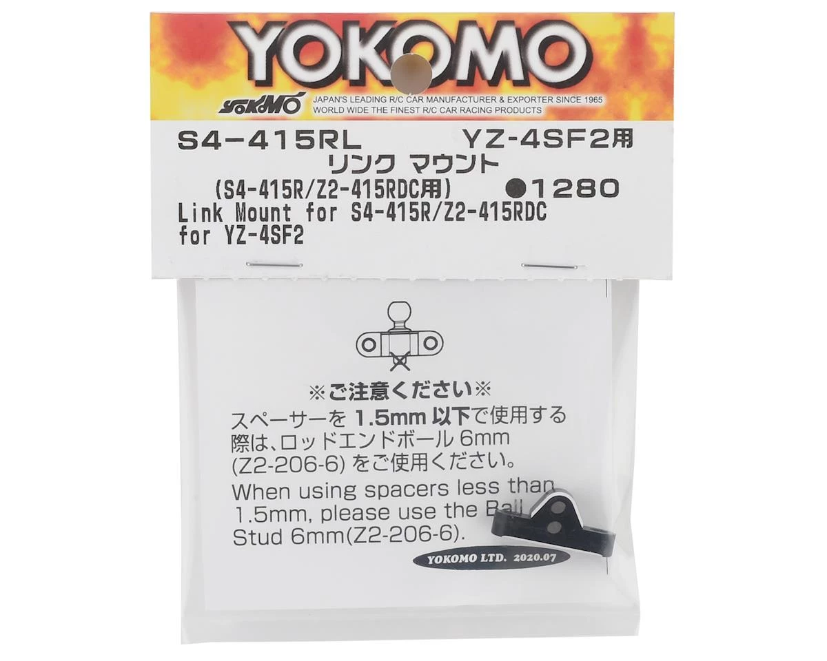 Yokomo YZ-4 SF2 Link Mount. This optional link mount is used with the Yokomo YOKS4-415R and YOKZ2-415RDC rear hubs. Package includes one link mount.