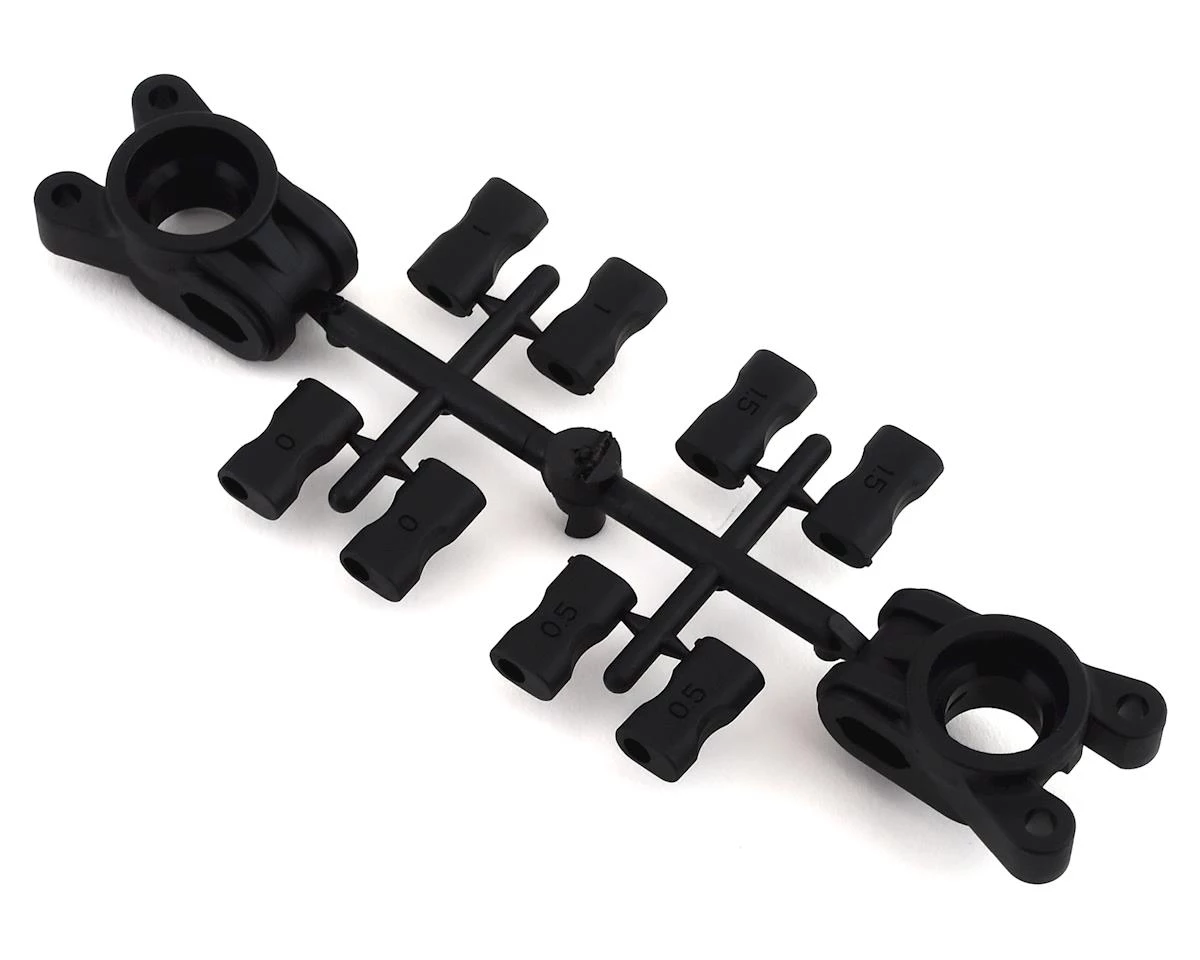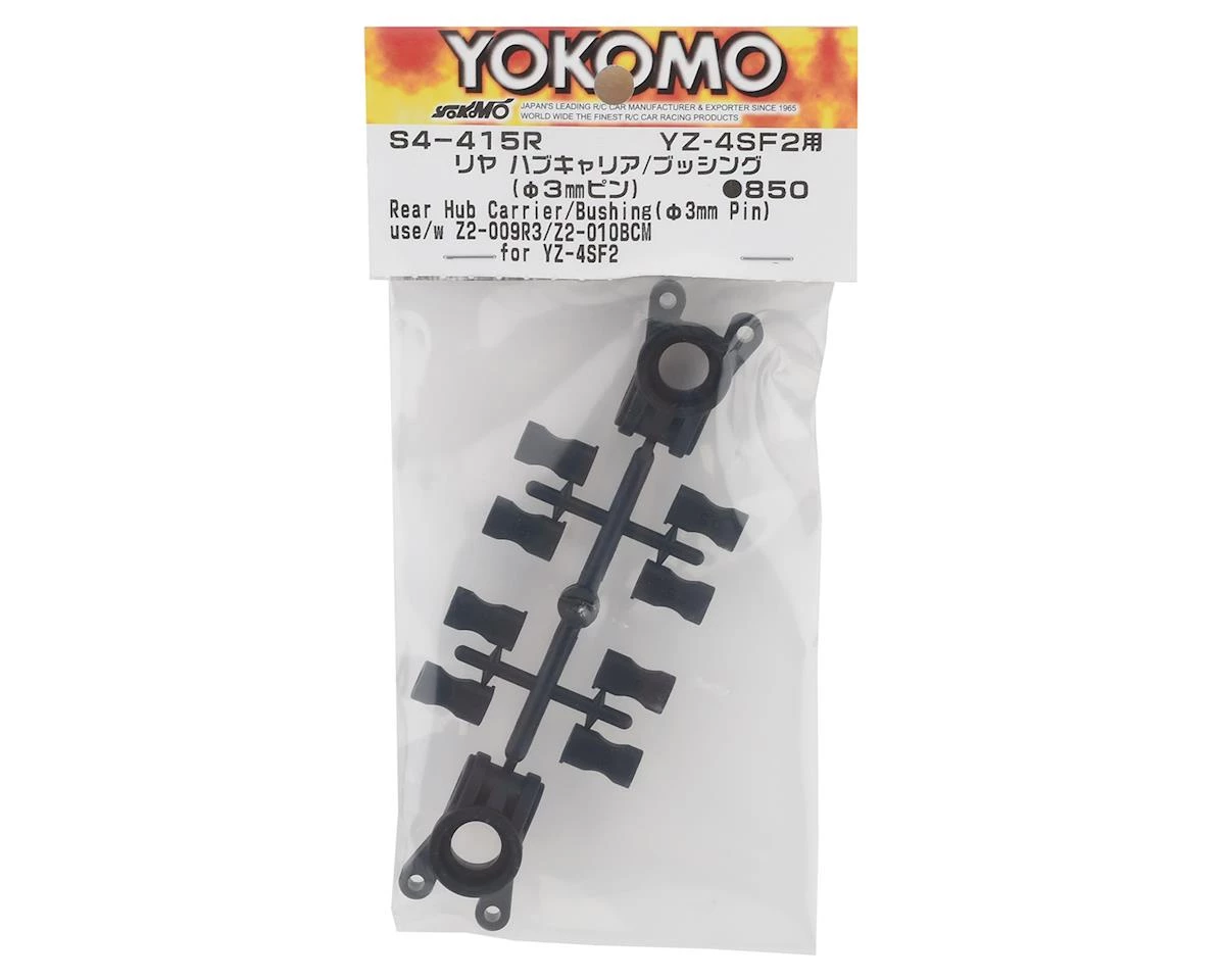 Yokomo YZ-4 SF2 Rear Hub Carrier & Bushing Set. Package includes replacement hub carriers and bushings used to tune the hub geometry.