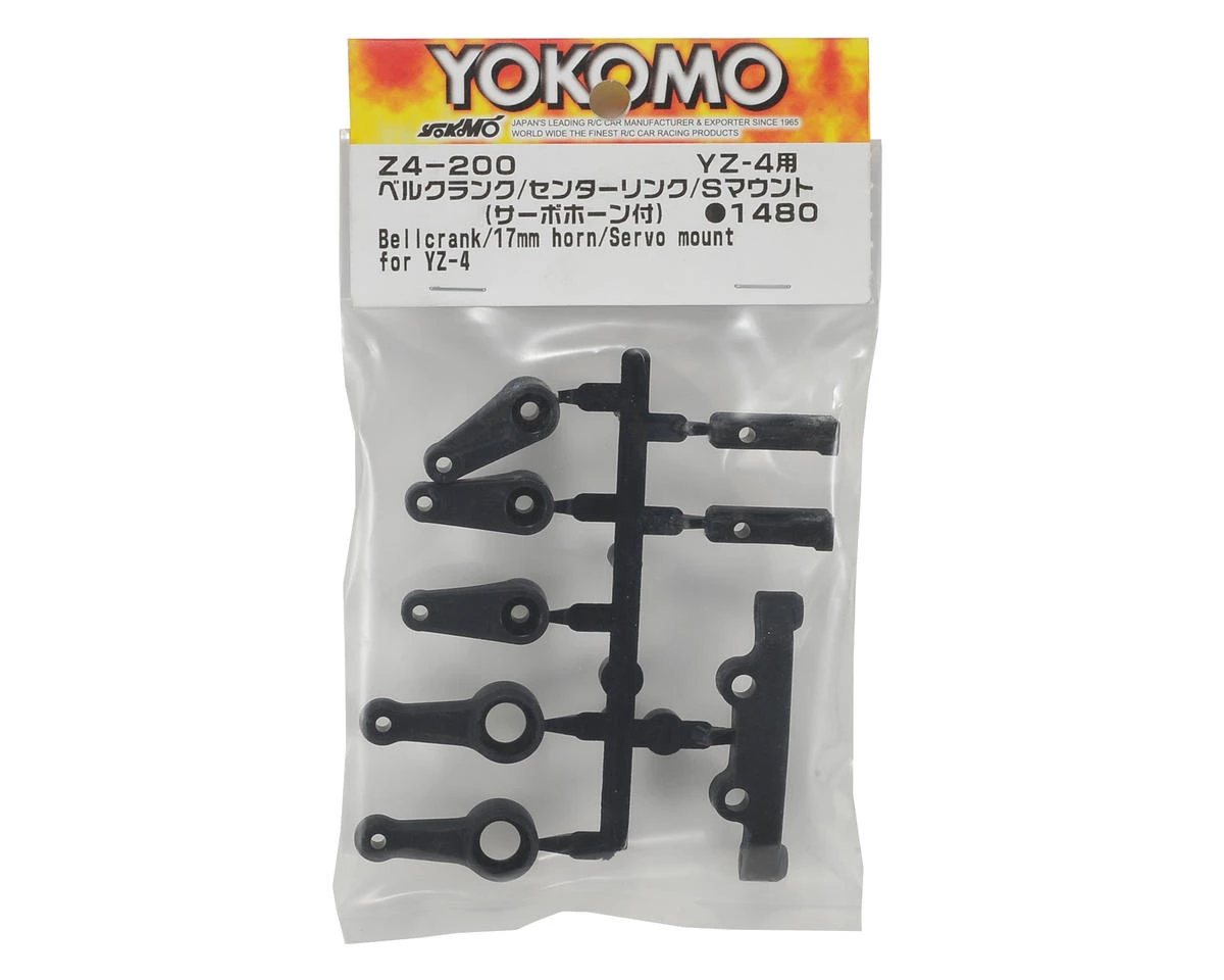 This is a replacement Yokomo YZ-4 Steering Bellcrank and Servo Mount Set. This package also includes the steering rack and 17mm Servo Horns to fit most popular servo splines.Â
